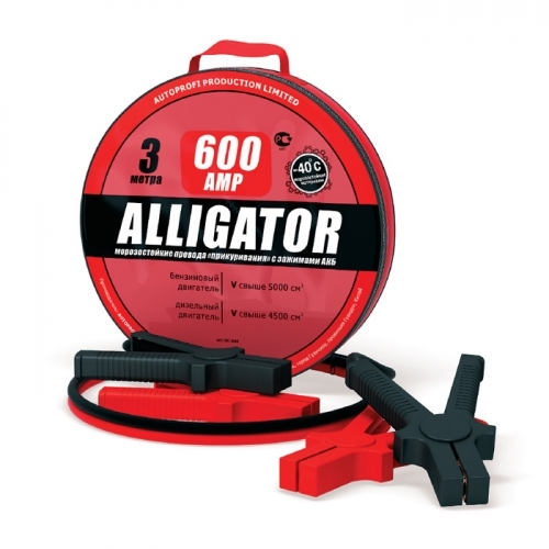 Провода прикуривания Autoprofi "Аллигатор" обладают длиной 3 метра и пропускают ток силой до 600 ампер. Это позволяет использовать их для запуска большинства автомобилей, в том числе оснащенных бензиновыми двигателями объемом свыше 5 литров или дизельными - объемом свыше 4,5 литров.